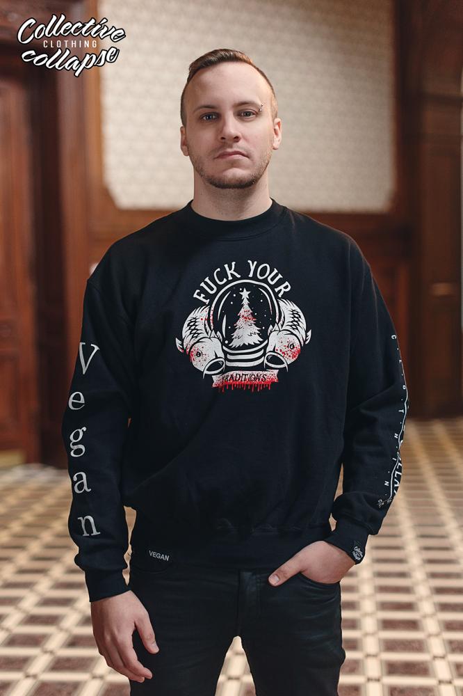 Design od Mirka z BYTHUR art poukazuje na to, že většina tradic má značne krvavou historii a i když se píše 2015, nic se na tom nezměnilo. Všechny ty vánoce, velikonoce a podobné vyndané svátky, co nesou značně krvavou daň, jsou z dnešního pohledu stejný přežitek jako jezení masa. Proto můžete vyjádřit bojkot nesmyslných tradic tímto super trikem.